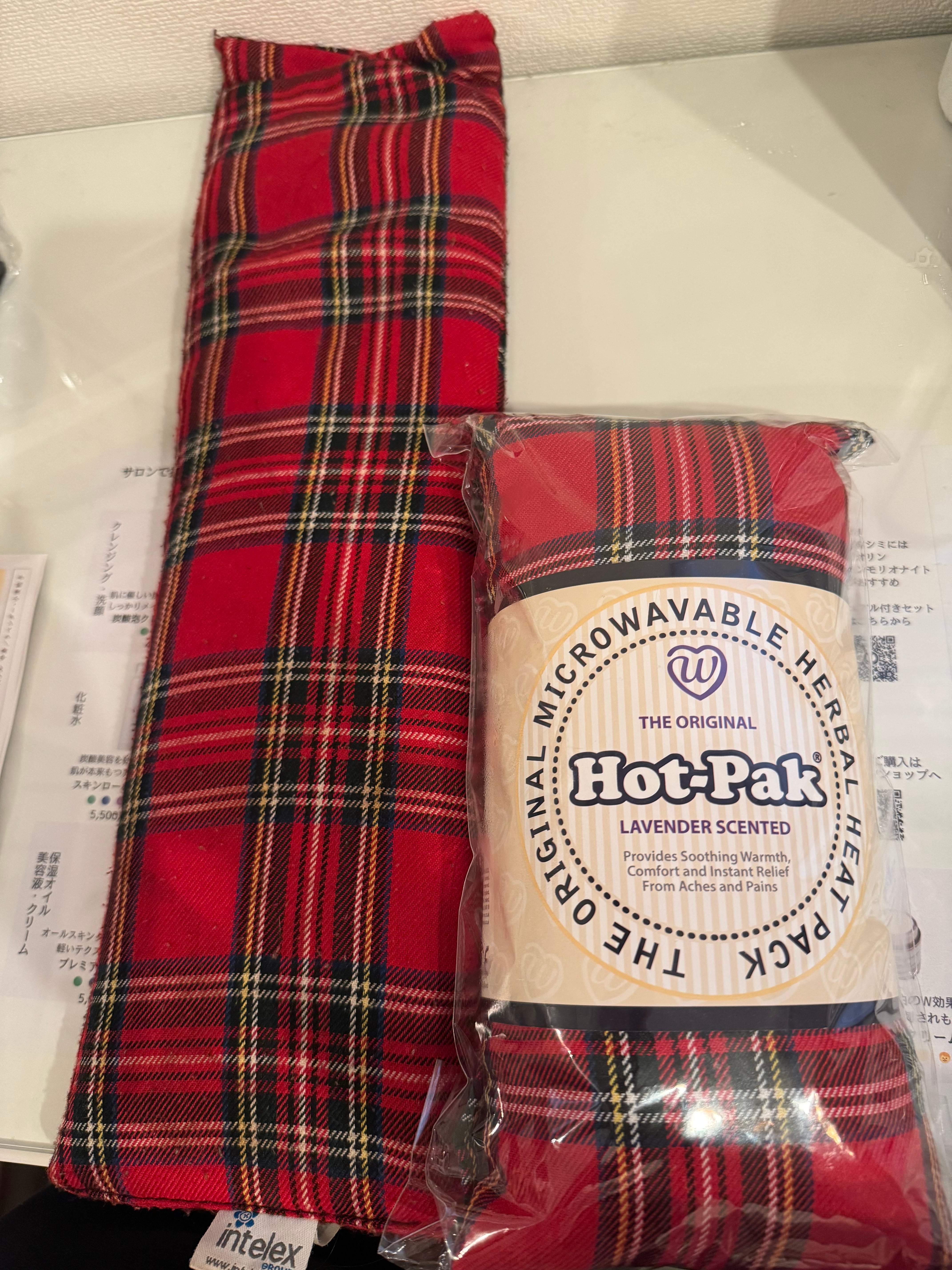 冬場でハーブテントを利用しないお客様に、頭蓋骨のリフレを終えた後、首の後ろに入れて首肩を温めるように使っていますが、高さが人それぞれお好みにできるので、温かさと共にとても好評です