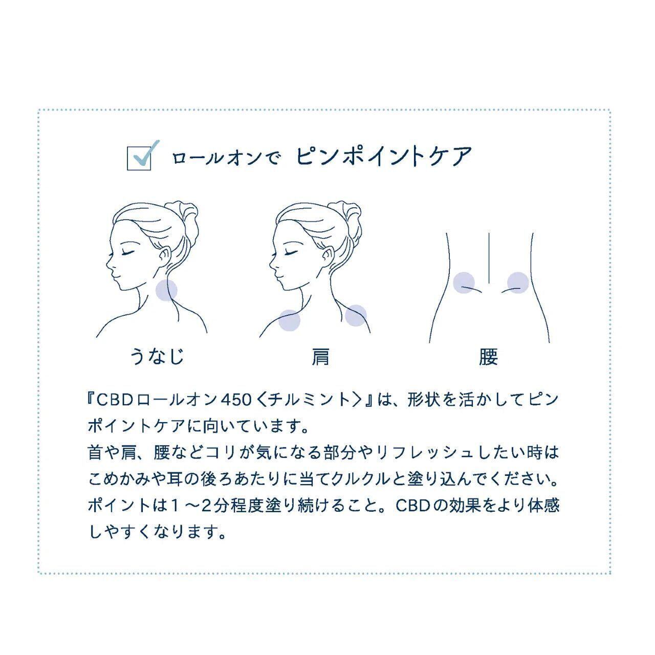 清涼感がとても心地よく、またロールオンなので手につくことなく即使えるところも便利です。私は睡眠の質向上も期待できるので、就寝前に肩さっと首(背骨ライン)と耳後ろに使っています